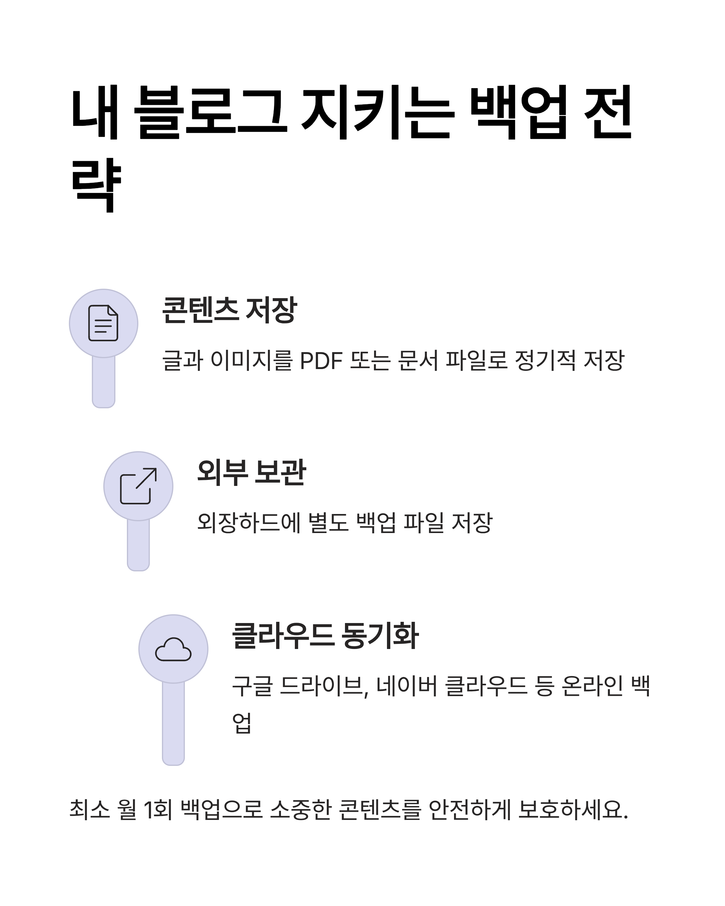 - 원고와 사진 파일은 클라우드·외장하드에 폴더별로 정리해 두기